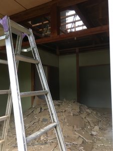 2Fの廃材を落とす為に1Fの天井(2Fの床)をぬいたところ