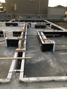 鋼製型枠を浮かせて一体打ちをしているので、一般的な基礎より相当こだわった内容なんですが(^^ゞ