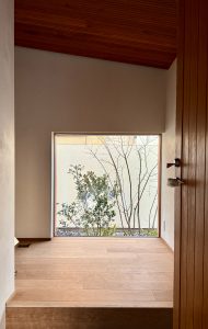 120坪の敷地にプライバシーを確保した庭を北南に設け